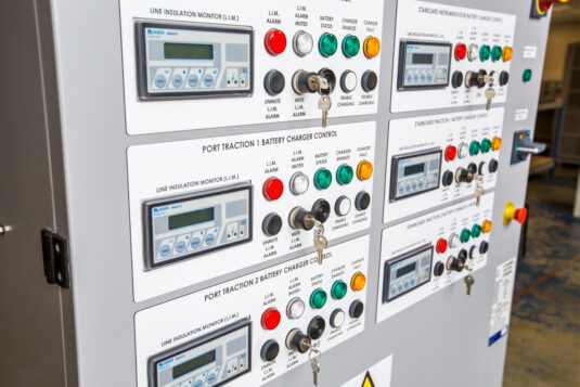 The battery charging system had to be a self contained unit suitable for mounting in a ships plant room. The unit had to be designed for marine use, have a graphical user interface and simple push button operation.